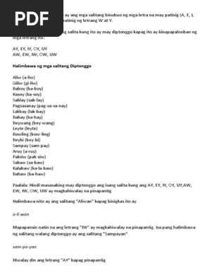 Ang Diptonggo Sa Filipino Ay Ang Mga Salitang Binubuo Ng Mga Letra Na May Patinig